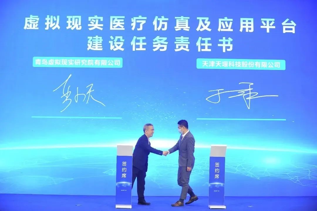 国家虚拟现实创新中心(青岛)是虚拟现实领域唯一的国家级创新中心,由南昌虚拟现实研究院牵头并联合青岛虚拟现实研究院共同组建。星空平台作为青岛虚拟现实研究院的股东单位,依托公司在VR医疗方面的创新技术实力和科研人员实力,参与国家创新中心建设工作。会上,天堰科技与青岛虚拟现实研究院签订了《虚拟现实医疗仿真及应用平台》建设任务责任书,以期深度探索医学模拟教学与虚拟现实的融合发展,推动未来医学教学模式巨大变革,打造以虚拟现实为基础,实践为目的的虚拟医疗体系。同时,天堰将与中心合作单位协同创新,共同推动国家创新中心的生态化可持续发展,实现虚拟现实在中国重点产业的创新应用;引领虚拟现实产业升级改革,持续推动产业的高效和高质量进步。