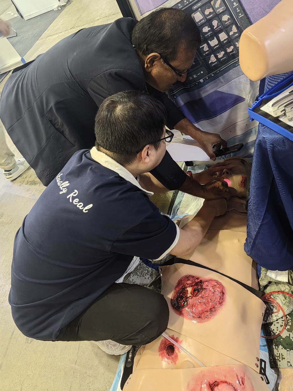 Attendees express their astonishment at the high degree of realism exhibited by Combat Self-aid & Buddy-aid Manikin.